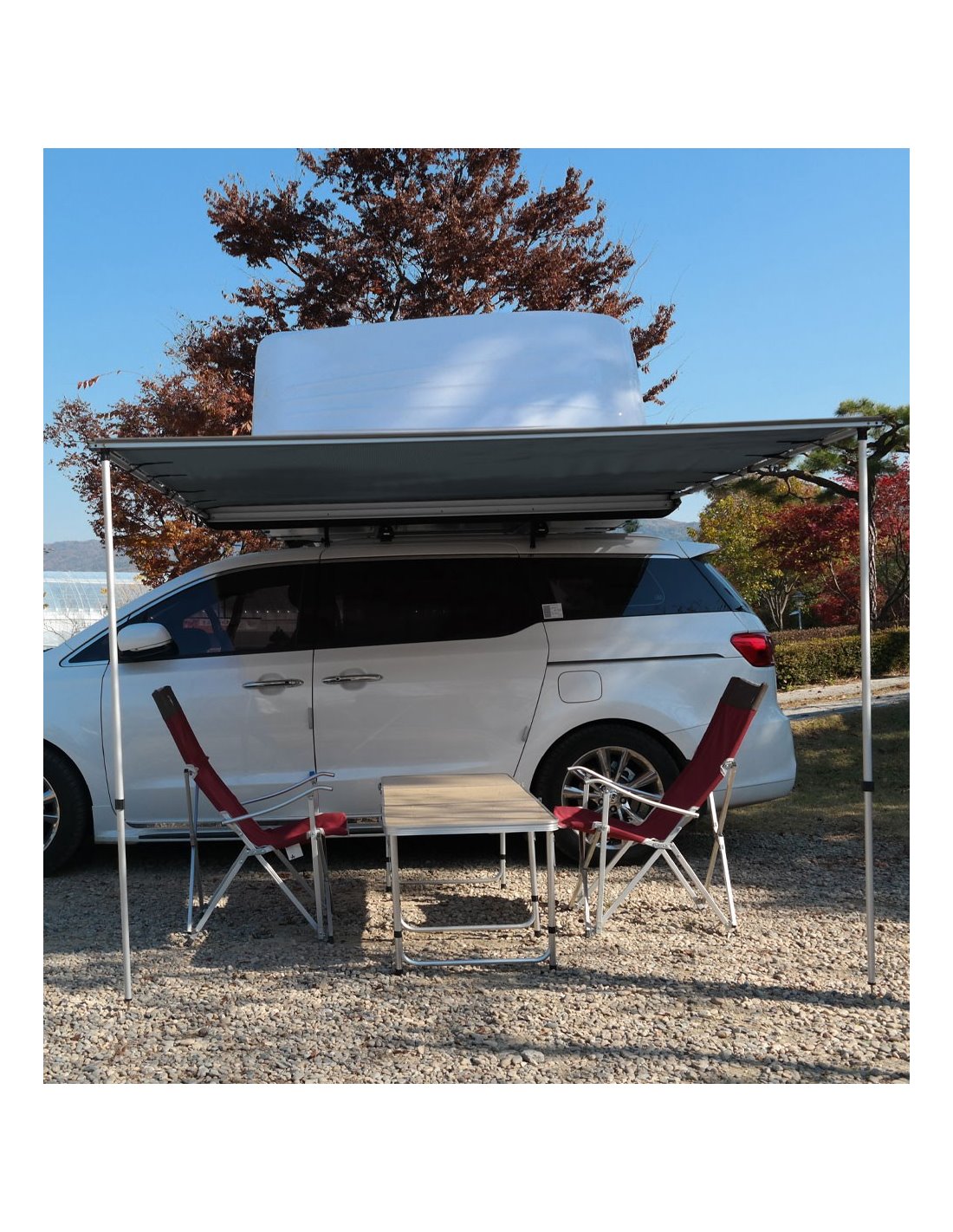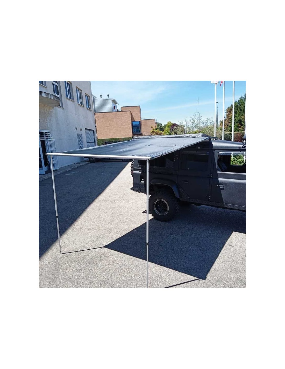 Toldo universal para instalación* en lateral de vehículos 4×4, SUV, turismos, furgonetas y caravanas. Ideal para protegerse del sol y de la lluvía en días de ruta.
