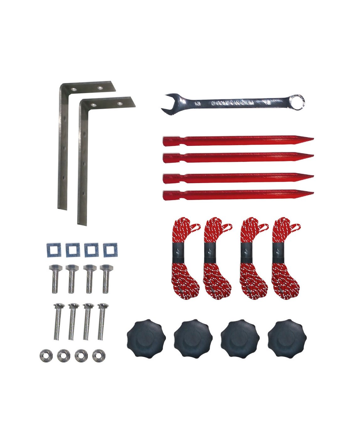 Fácil instalación y desmontaje. Incluye 4 piquetas, 4 vientos y los herrajes de fijación.