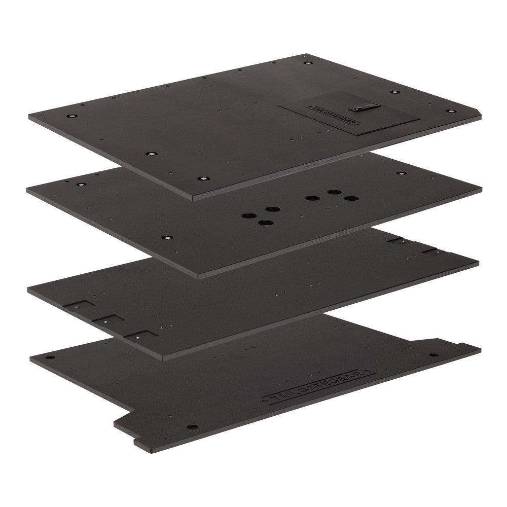 Espacio : Maximiza el espacio disponible en el maletero creando una geometría definida para cada sección. Esta combinación te permite aprovechar no solo los módulos, sino también el espacio a su alrededor y encima. Usa, por ejemplo, el lateral del cajón doble apilado para guardar equipo blando y objetos de fácil acceso. Agrega más espacio seleccionando la configuración de la Plataforma X, si está disponible .