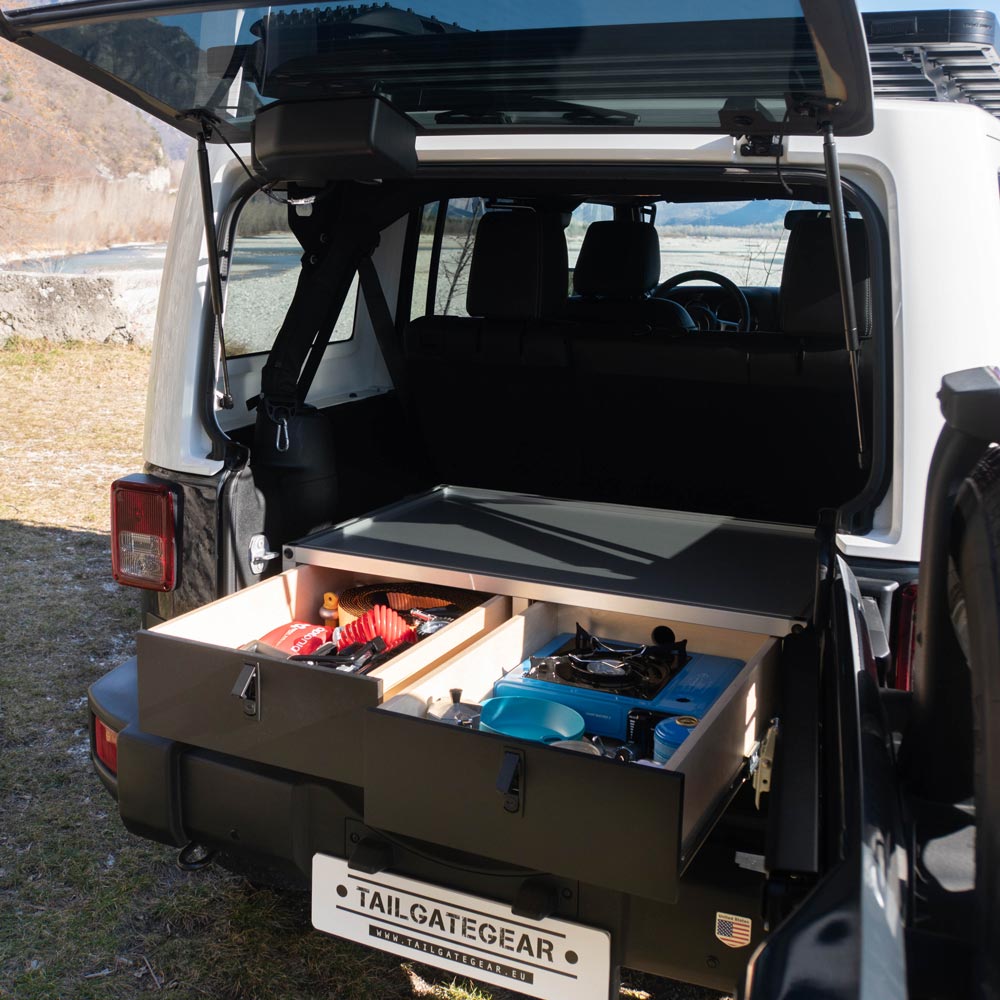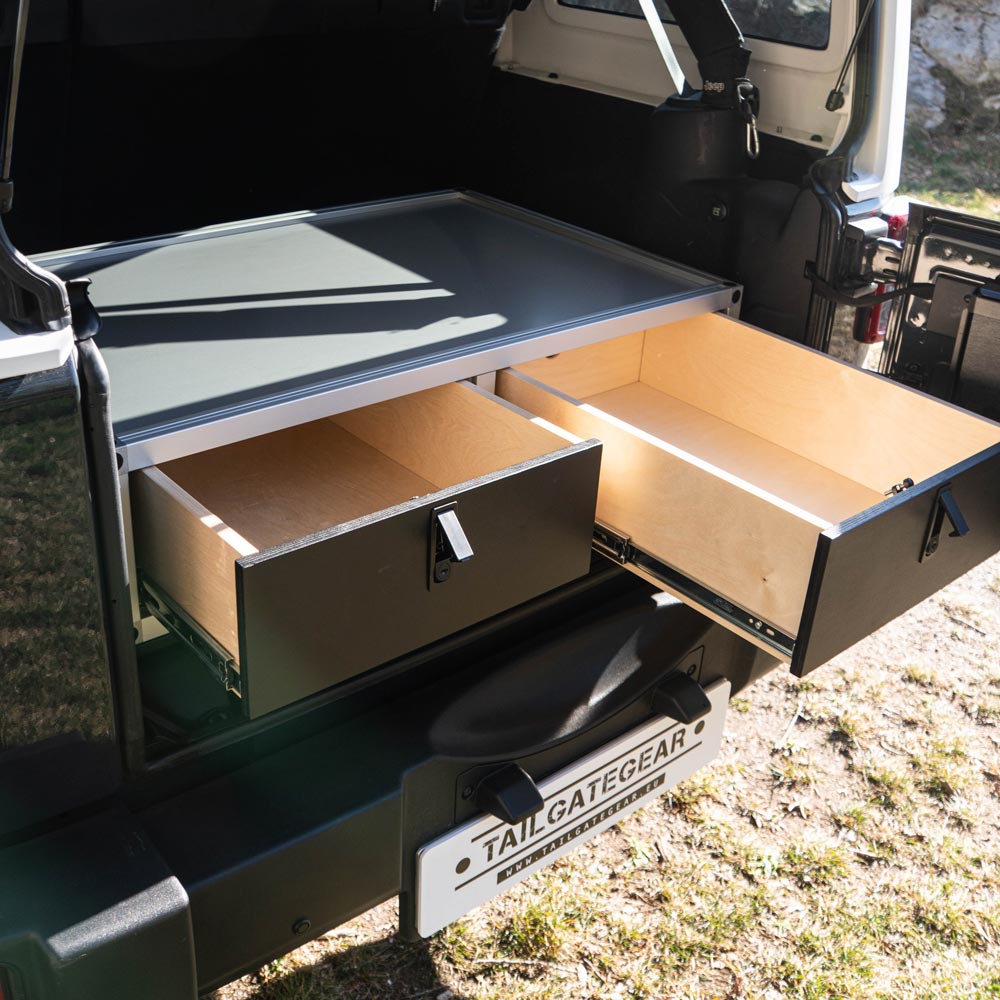 El robusto marco de aluminio contiene ambos cajones y los mantiene seguros y organizados. Además, permite guardar el módulo con orden cuando no lo necesitas en el coche.