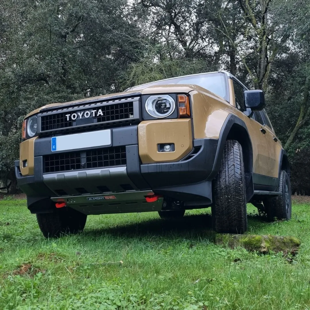 Protección frontal TOYOTA Land Cruiser J250 2024. La protección cubre la parte inferior del parachoques, radiadores, diferencial delantero, caja de dirección, motor y barra estabilizadora electrónica.