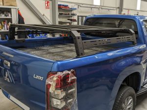 Su diseño modular permite adaptarse a diferentes configuraciones de caja y se instala sin perforaciones, utilizando los puntos de anclaje originales del vehículo.