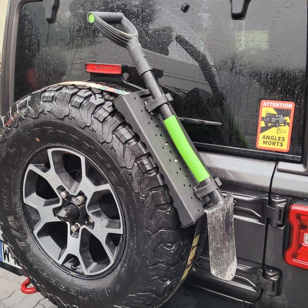El producto se puede utilizar como soporte en la rueda de repuesto, pero también como base para montar soportes Quick-fist / Fit-Rub. Los orificios pretaladrados son compatibles con los soportes para bidones Rotopax así como con otros soportes para bidones.
