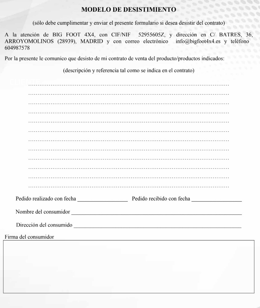 DERECHO DE DESISTIMIENTO DE www.bigfoot4x4.es